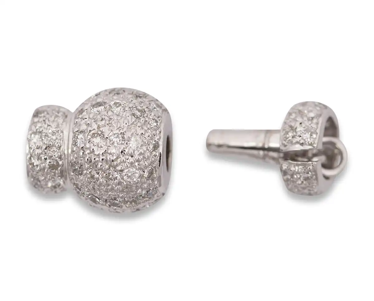 This art deco inspired clasp is a sensational pearl clasp that has over two thirds of a carat of diamonds that are set in 18K white gold. The gorgeous design of this pearl clasp makes it a wonderful choice if you are looking to create the pearl bracelet of your dreams.