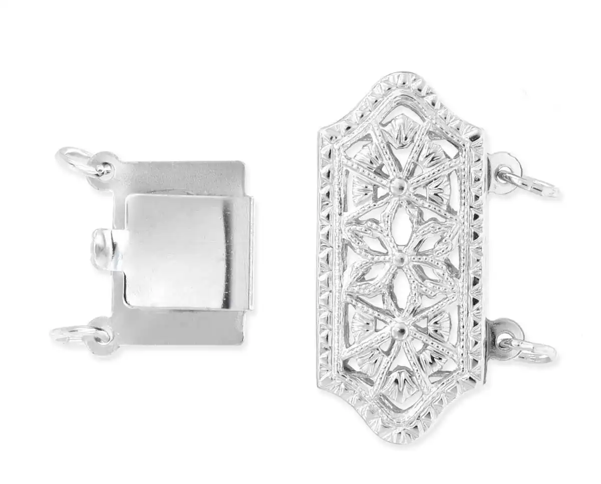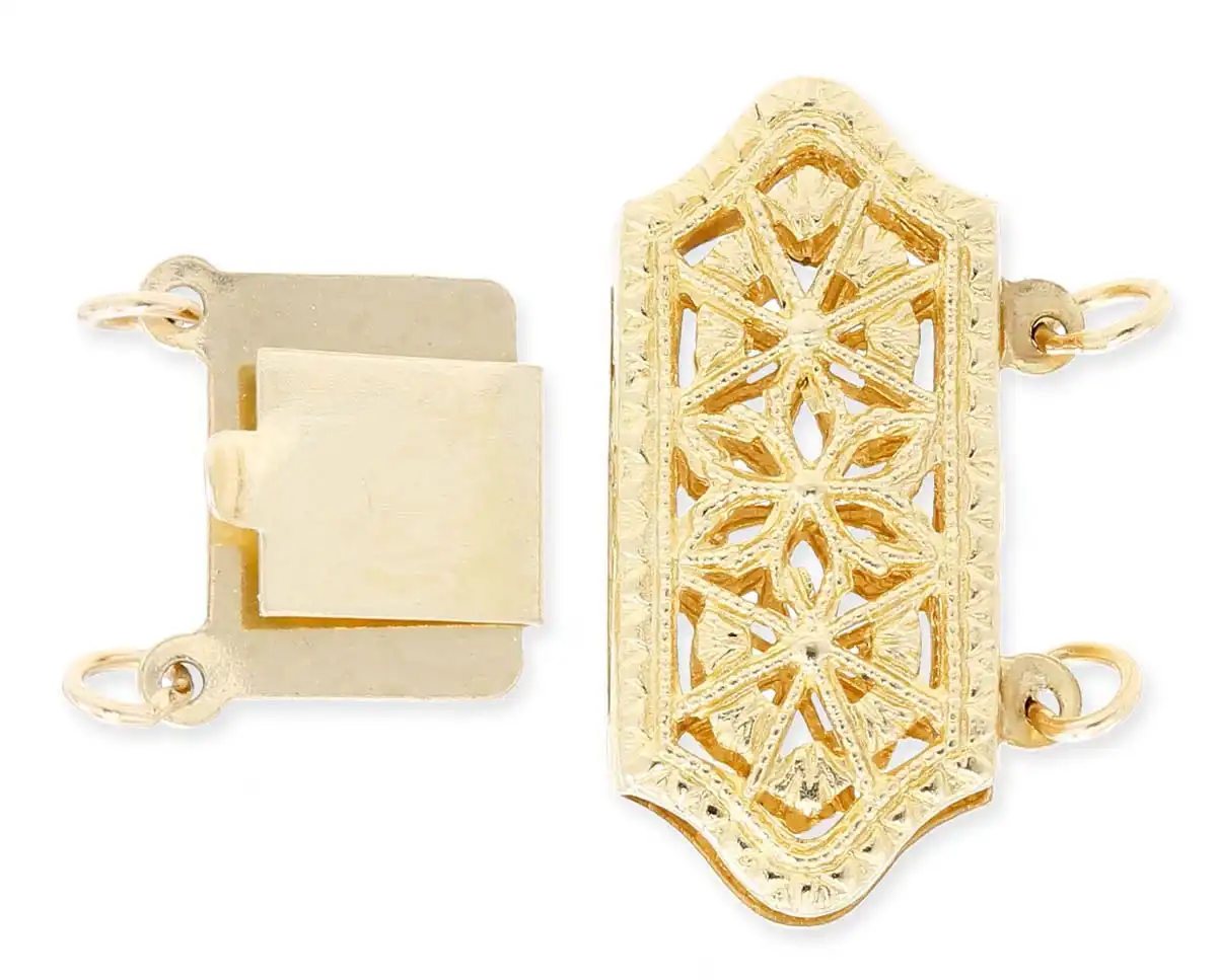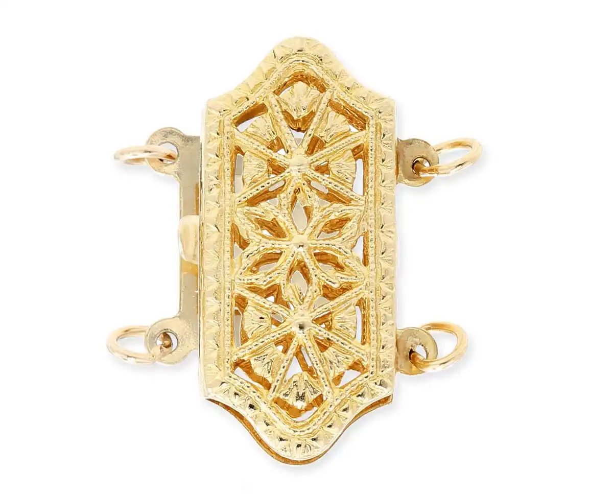 This beautiful filigree pearl clasp is available in either 14K white or yellow gold. Match it with multiple strands of freshwater pearls in the size that you like and you will have your own custom made pearl necklace.